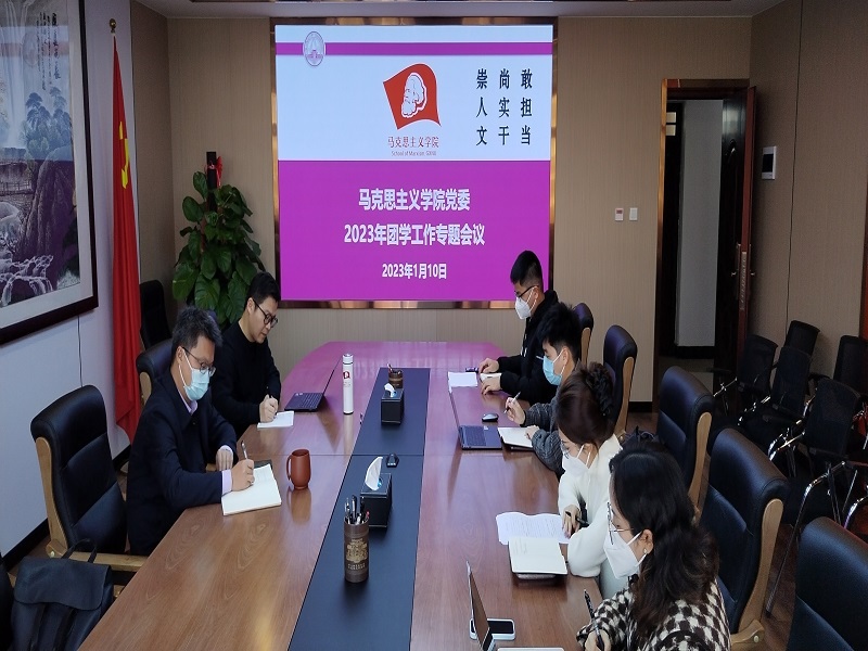 开局争先,起步加速。1月10日下午,马克思主义学院党委在育才校区文二楼北楼506多功能室召开2023年团学工作专题会议,深入学习贯彻习近平新时代中国特色社会主义思想和党的二十大精神,围绕学校国内高水平大学和幸福美好师大建设的各项中心任务,聚焦培根铸魂立德树人、“三全育人”综合改革和全国重点马院核心任务,坚持以问题导向和目标导向,总结工作、研判形势,剖析问题、科学谋划,研究部署2023年团学工作。学院党委副书记、全体辅导员参会。会议由学院党委主要负责人主持。