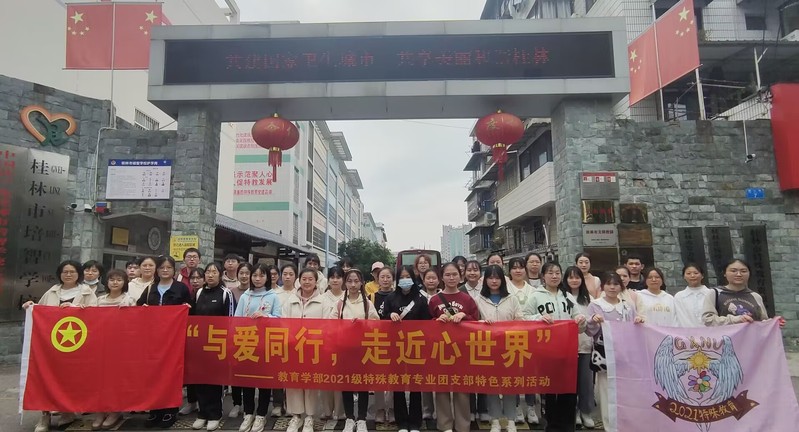 在4月2日世界孤独症日即将到来之际,为发挥我校特殊教育师范生的社会责任与专业实践意识,促进自闭症儿童的身心发展,唤起社会对自闭症群体的广泛关注,3月31日下午,广西师范大学教育学部2021级特殊教育团支部到桂林市培智学校开展“与爱同行,走近心世界”主题活动。针对孤独症核心症状之一的社会性交往障碍,本次主题活动模拟了市场情境,为自闭症儿童提供参与社会交往活动的具身场景。参与活动的还有22级部分同学和研究生。