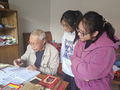 当天下午,团队抵达“虽蕾”山歌传承基地,受到传承人岳建肖的热情接待。传承人为团队介绍了“虽蕾”山歌的传承脉络,展示了其多年来创作的山歌稿件,并分享了他在创作过程中的心路历程。此外,传承人还现场演唱了多首作品,团队成员进行了多方位录制。结束时,传承人还将一本记录其多年创作成果的作品集赠予团队以供进一步研究。