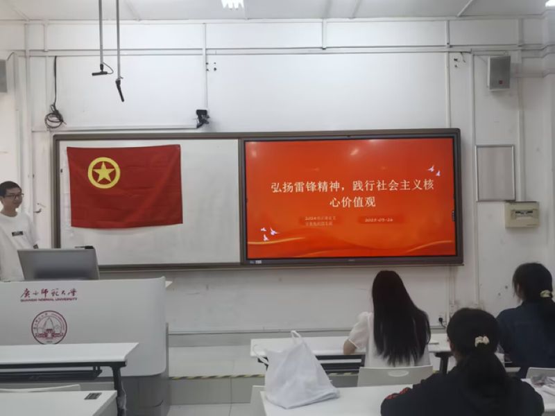活动伊始,支部全体成员佩戴好团徽,齐唱团歌。随后活动进入正题,由宣传委员梁雨瀚带领支部成员观看《那年那兔那些事》纪念雷锋特别篇,表明雷锋精神一直以来都在每个人的身边,熠熠生辉,永垂不朽。紧接着,宣传委员梁雨瀚为支部成员重温雷锋精神的内涵与价值。雷锋精神的核心是无私奉献,它历经岁月涤荡浮华,激励着一代又一代实干人奋发创新,为人民服务。接下来,宣传委员梁雨瀚展望未来,鼓励支部全体成员传承、发扬雷锋精神,身体力行,将社会主义核心价值观落小、落实,积极参与志愿活动,既丰富自我阅历,又增进与人民的联系。最后,宣传委员梁雨瀚表示,学习雷锋精神,可以先从日常生活入手,例如积极参与社会公益活动、倡导节约环保生活方式以及培养互帮互助良好风气。雷锋精神,不应止于心动,更要付诸行动。