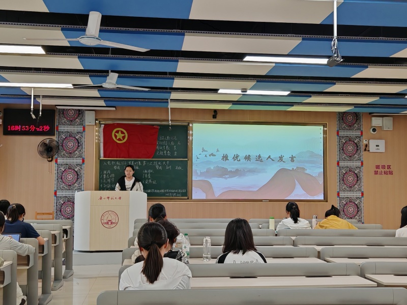 为扎实推进党员发展工作,引导青年团员积极向党组织靠拢,进一步夯实党团共建基础。9月24日,文学院/新闻与传播学院2024级汉语言文学4班团支部“双推优”大会于雁山校区文一区104教室召开。此次会议由团支书陈丹主持,辅导员陶柳洁老师、文学院/新闻与传播学院学生第三党支部代表王国钰出席,团支部成员共同参加。