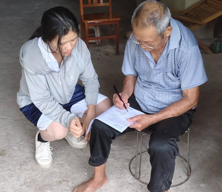 图为团队成员在社区向居民重新发放并讲解优化后的问卷