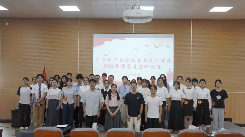 为选拔出具有优秀教学技能和完备知识素养的师范生参加2025年第十二届广西师范大学师范生演讲比赛,10月10日下午,数学与统计学院在雁山校区理科楼四区501教室报告厅举行了“铸魂强师,共绘教育蓝图”师范生演讲比赛。