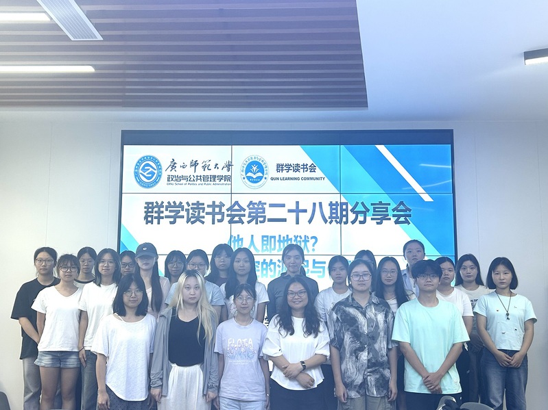 2025年10月17日,政治与公共管理学院社会工作专业于雁山校区文三区105社工实验室举办了第二十八期群学读书分享会。汤茜草副教授与同学们共同研读了戴维·迈尔斯所著的《他人即地狱?人际冲突的源起与化解》。本次读书会由2023级社会工作专业本科生吴世鸣主持。