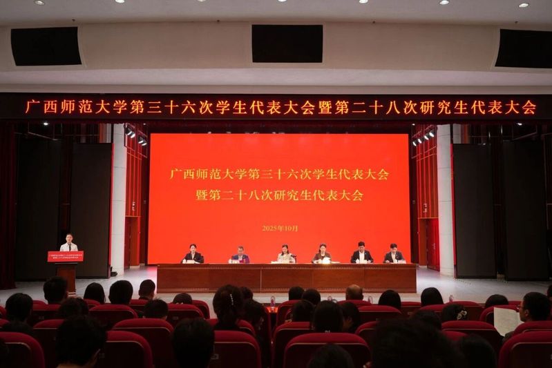 2025年10月25日上午,广西师范大学第三十六次学生代表大会暨第二十八次研究生代表大会在雁山校区音乐学院三楼综合厅隆重召开。校党委常委、副校长沈星灿出席开幕会并讲话。学工部(处)、研工部、校团委主要负责人,桂林市兄弟高校学生会、研究生会代表,各学院(部)团委书记,400 余名本科生、研究生代表齐聚现场,共赴青春盛会。