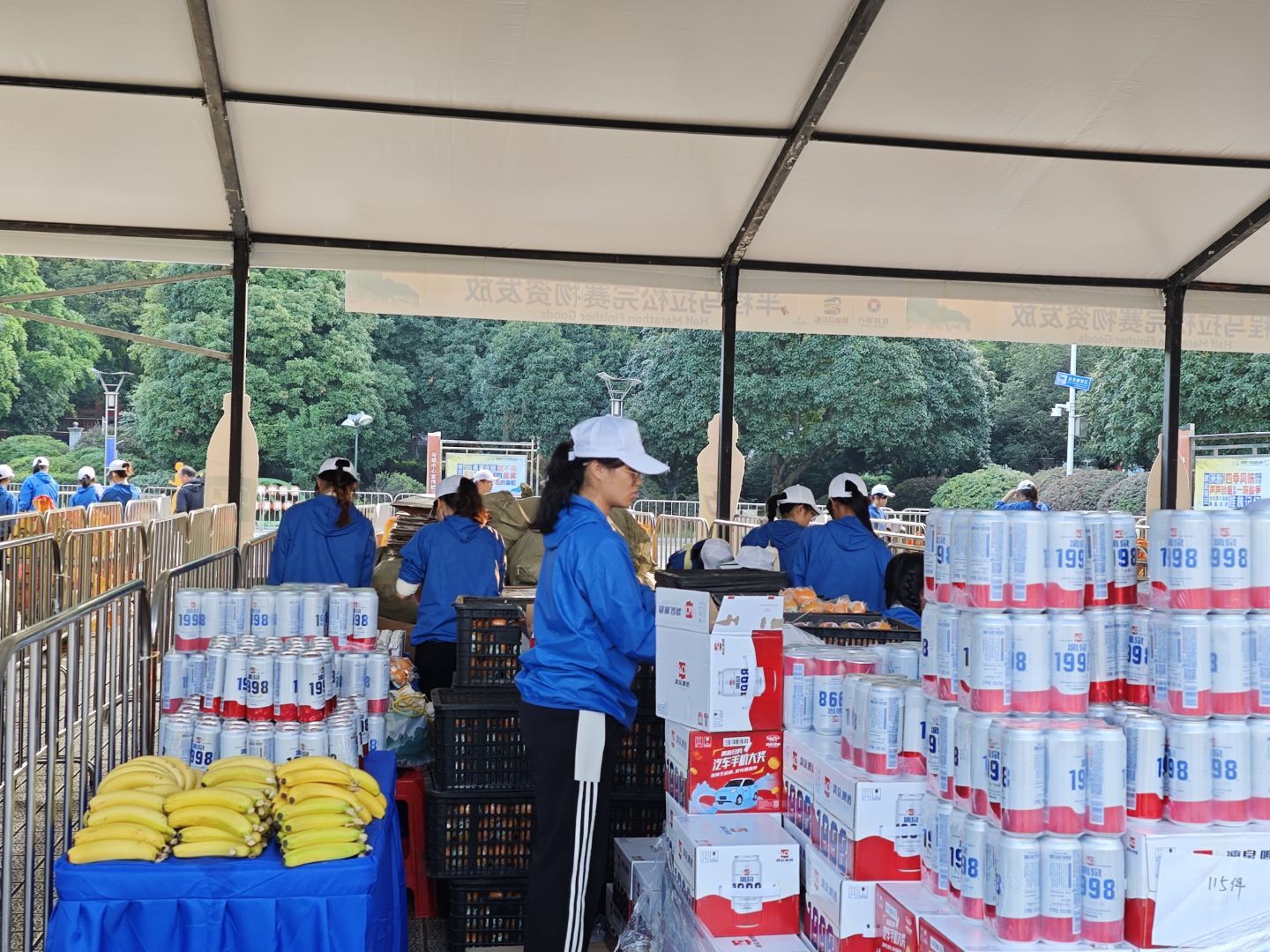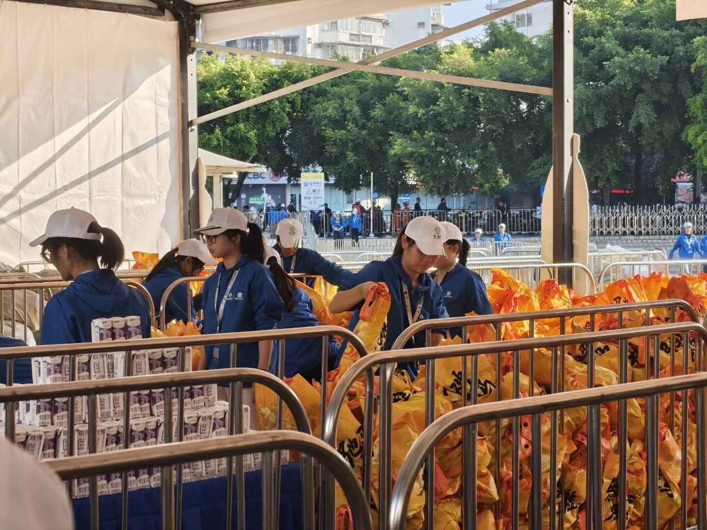 凌晨5点,天色未明,校青协志愿者已全员集结完毕,投入紧张的赛前筹备工作。在物资分发区,志愿者们细致地分装参赛包、完赛包及各类补给物资,并准确搬运至指定点位。他们以严谨细致、有条不紊的行动,确保了23000份赛事物资精准、及时地送达每一位选手手中,用周全的准备为赛事预热,展现了师大学子的笃行与担当。
