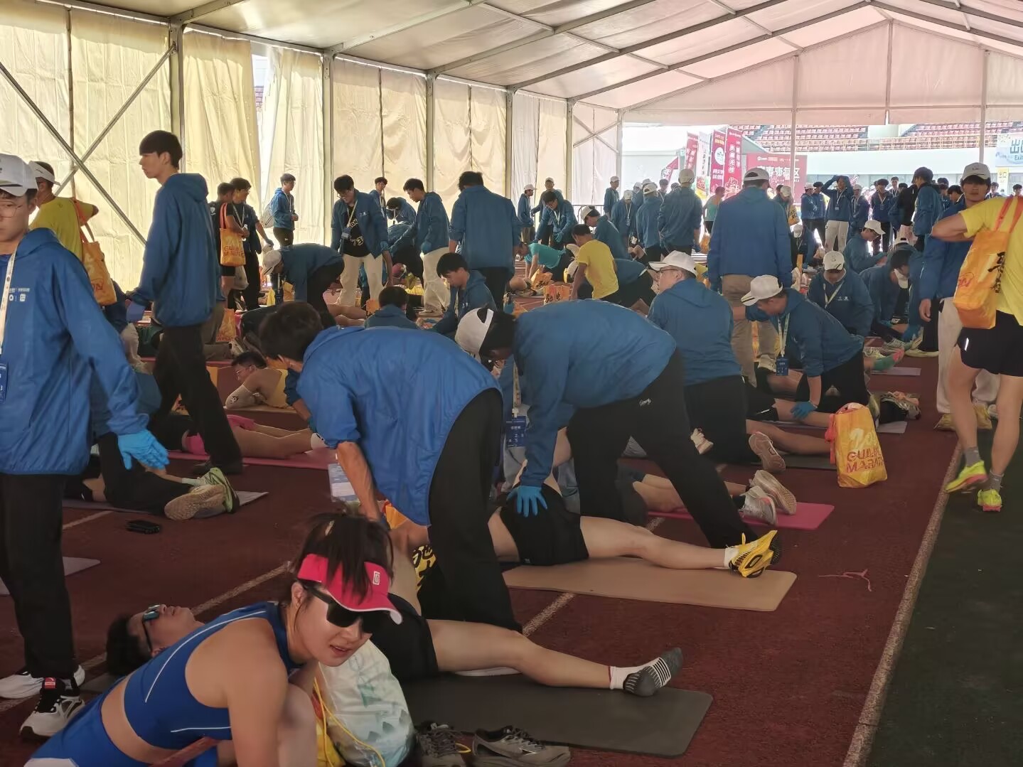 赛事期间,志愿者们各司其职,全程护航。在终点区域,他们为筋疲力尽的完赛选手挂上象征荣耀的奖牌,并递上温暖的完赛包;在赛后恢复区,他们凭借专业的手法为选手提供冰敷、拉伸等服务,有效缓解运动疲劳,预防损伤;在接待引导区,他们耐心解答疑问,清晰指引疏散路线,确保赛后秩序井然。自始至终,志愿者们热情地呐喊与鼓励回荡在赛道沿线,用滚烫的赤诚为每一位奔跑者注入力量。