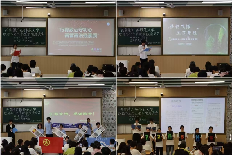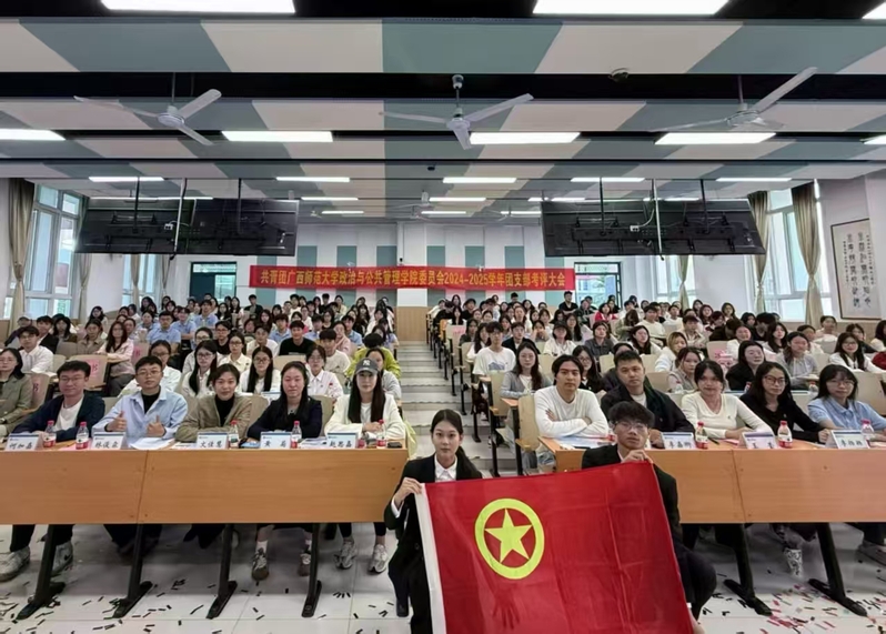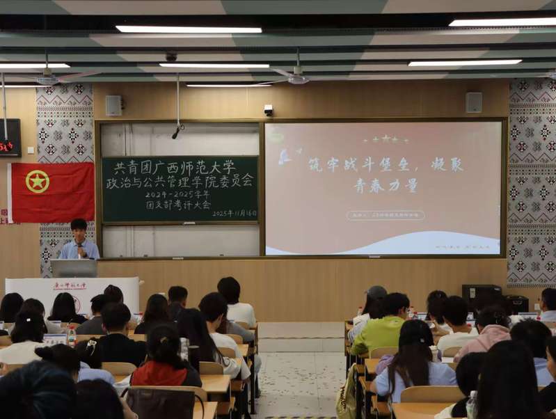 为筑牢团支部建设根基,凝聚团员青年成长向心力,2025年11月16日下午,政治与公共管理学院团委于雁山校区文四104教室举办2024-2025学年团支部考评大会。学院团委书记文佳慧,团委副书记林俊霖、黄菊,2024级本科生辅导员何加嘉,研究生辅导员赵思嘉及部分兼职辅导员出席活动。学院团务中心代表、兄弟学院代表、学院党支部代表及各团支部团员青年共同参与。