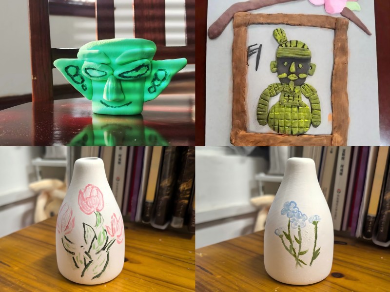 接着进入“历史文物百科知识竞赛”环节,竞赛内容涵盖考古、墓葬、历史知识、地理知识、碑帖书画以及收藏等多个领域,参赛选手们通过多种形式的互动和答题,展现了对历史文物的深厚兴趣和扎实知识。在后来的“历史文物模型创意手工坊”环节中,学子们组成六个团队,通过粘土、陶泥等材料亲手制作微缩版文物复制品,或制作三星堆珐琅书签等文创产品,或结合传统绘画技艺与现代设计的文创形式在陶瓷坯体上用画笔蘸取颜料进行绘画装饰,学生们不仅提升了动手能力,也在实践中感知到古代工匠的智慧,深刻体会到文物的文化内涵和审美价值,有利于增强保护文物的责任感。