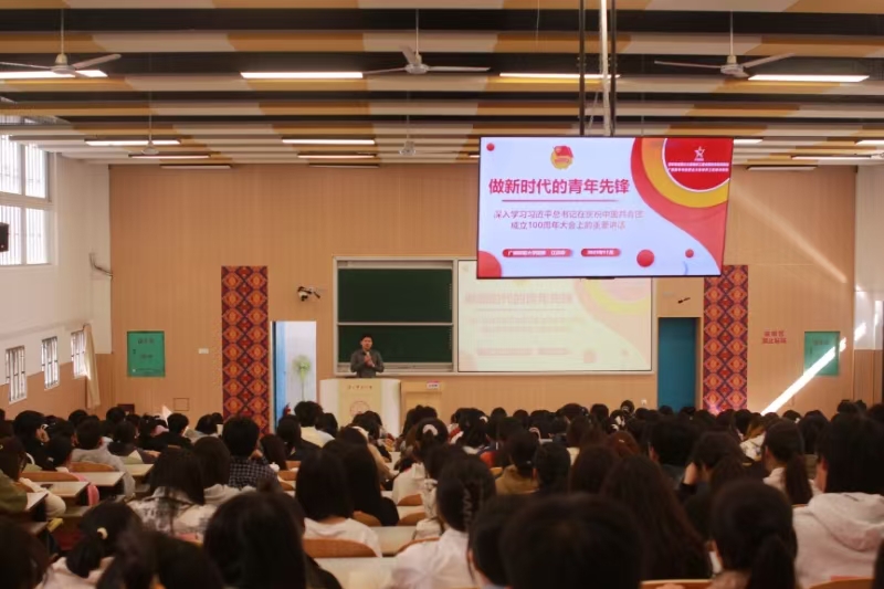 为助力入团积极分子精准把握中国共青团百年奋斗的发展脉络,清晰认知共青团的使命宗旨以及新时代青年的责任担当,11月28日,马克思主义学院、法学院/律师学院、政治与公共管理学院、外国语学院、数学与统计学院于雁山校区文一108教室同上一堂主题团课。校团委书记江庆彬以《做新时代的青年先锋——深入学习习近平总书记在庆祝中国共青团成立100周年大会上的重要讲话》为主题,与300余名入团积极分子进行了深入交流。