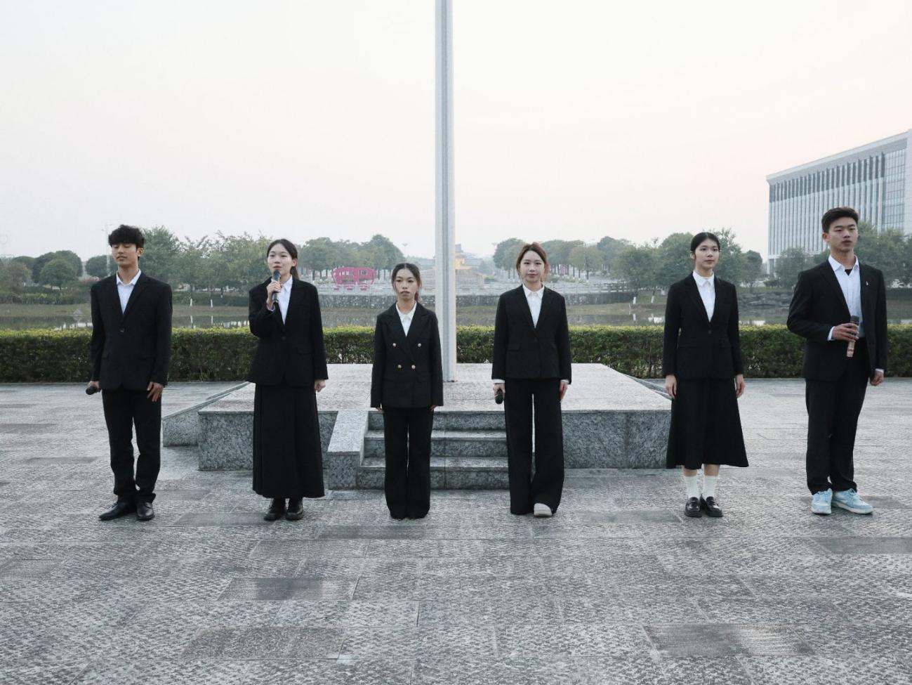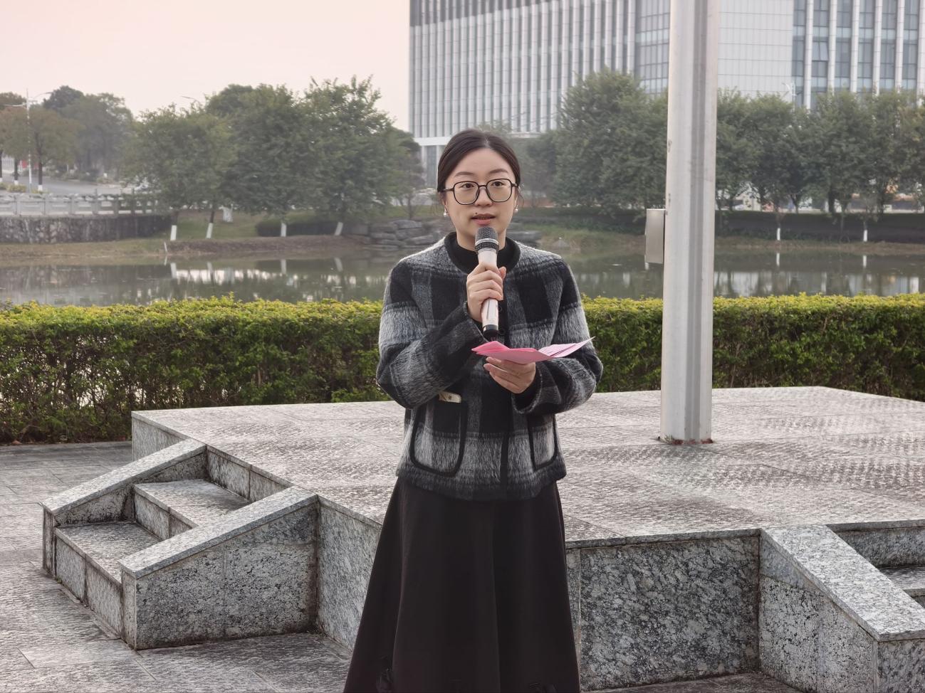 12月8日清晨,冬阳初照,经济管理学院在雁山校区图书馆广场举行升旗仪式暨 “清正廉洁守初心 砥砺奋进担使命”主题团日公开课,学院党委副书记、团委书记,专、兼辅导员以及全体本研学生共同参与,在晨光中接受了一场沉浸式的思想洗礼与精神淬炼。活动由学院团委副书记主持。