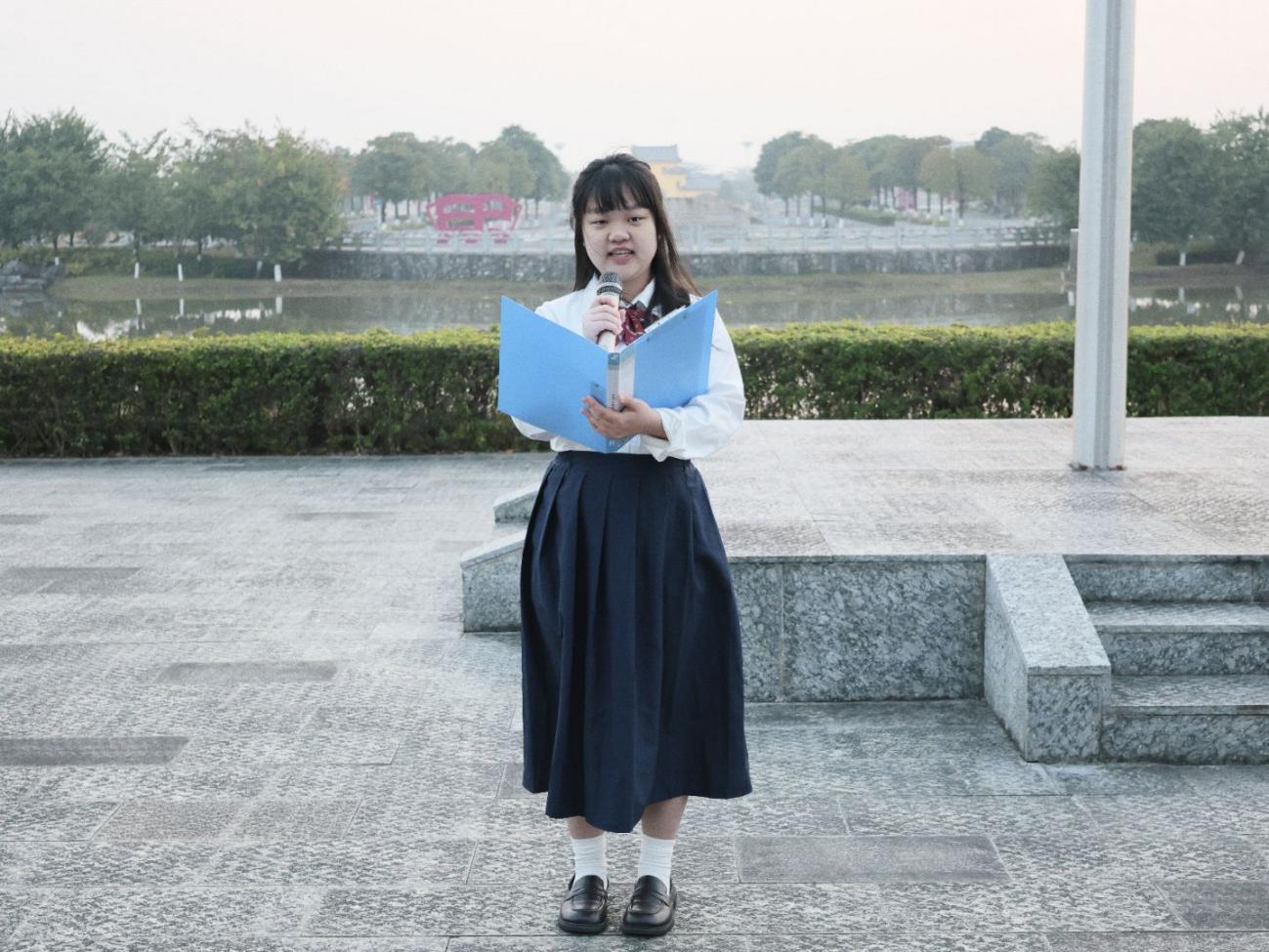 校园廉洁大使蓝思宇宣读诚信考试倡议书