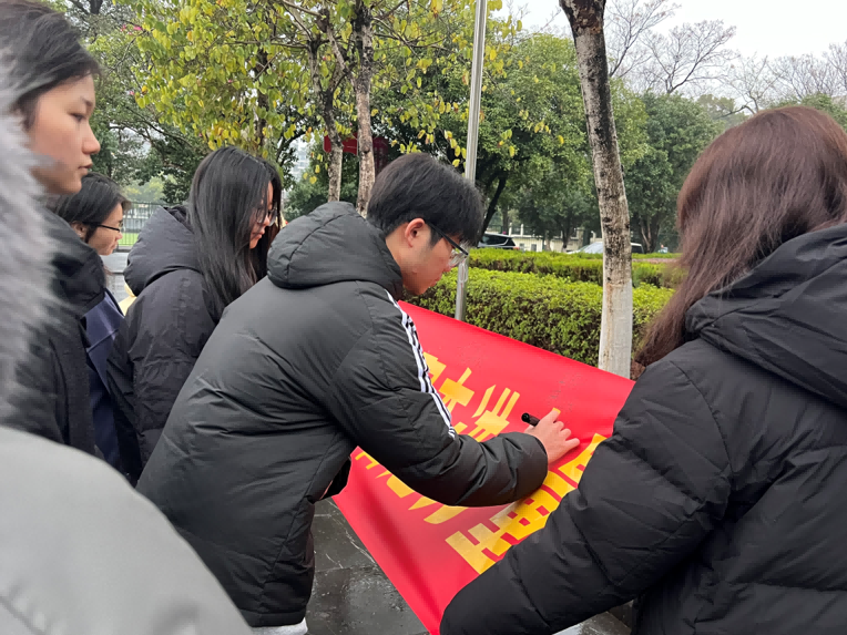 师生在横幅上签字