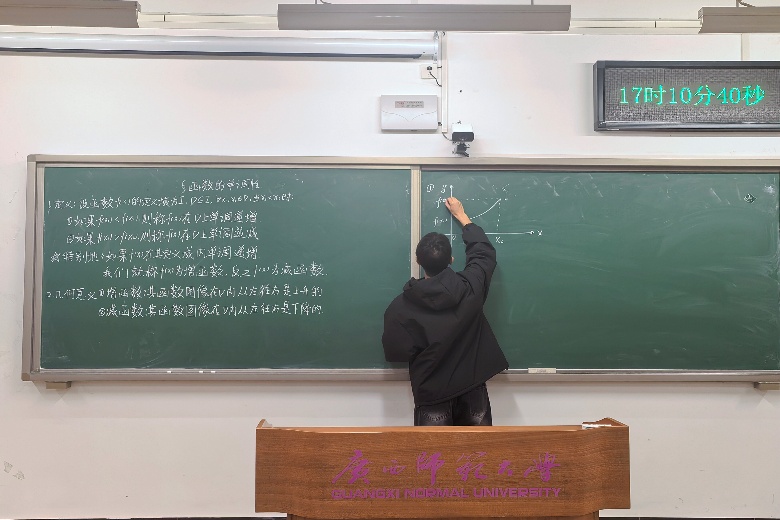 为提高师范生板书板画技能水平,展示粉笔书法独特魅力,12月3日至12月12日,数学与统计学院教师职业技能协会举办“笔落生花,板绘匠心”板书板画教学技能比赛,由数学与统计学院唐剑岚教授及往届教师职业技能竞赛获奖选手担任评委。