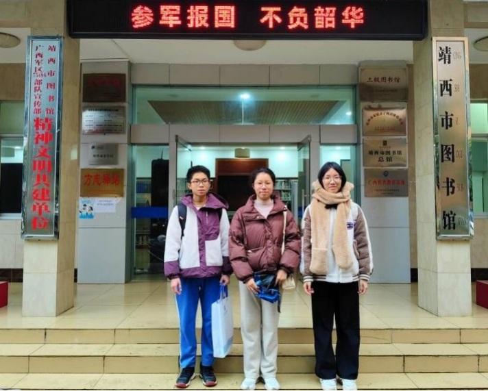 图为团队成员在靖西图书馆前合影