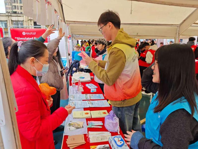展示摊位前人头攒动,市民和志愿者同仁等纷纷驻足并参与志愿服务及生态环保的灯谜竞猜。团队成员以灯谜为载体,在揭晓谜底的同时,主动向市民系统讲解漓江生态保护的核心知识与重要意义,以有趣的互动将抽象的环保理念和知识转化为生动的科普教育实践,让守护漓江的意识在市民心中悄然扎根。