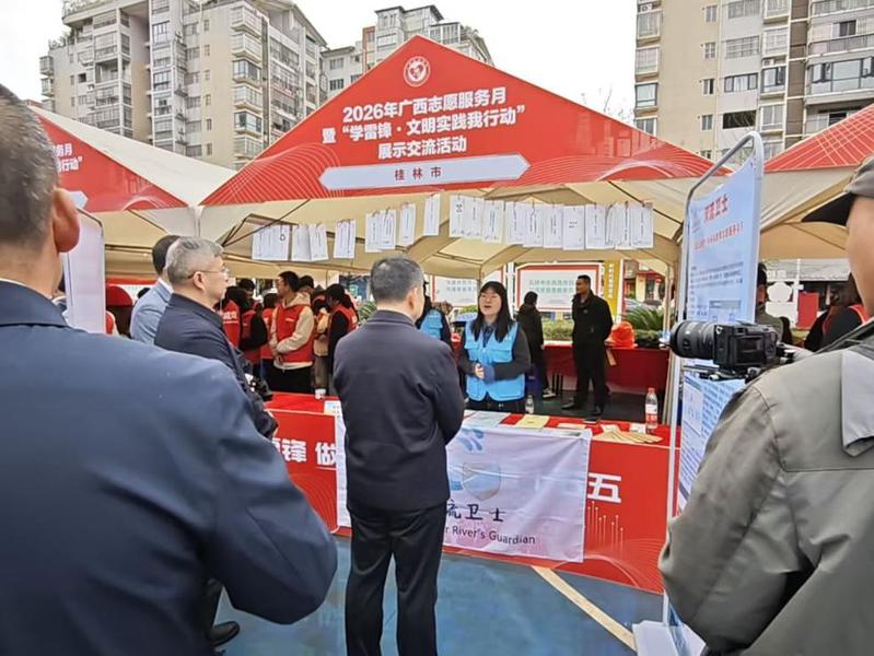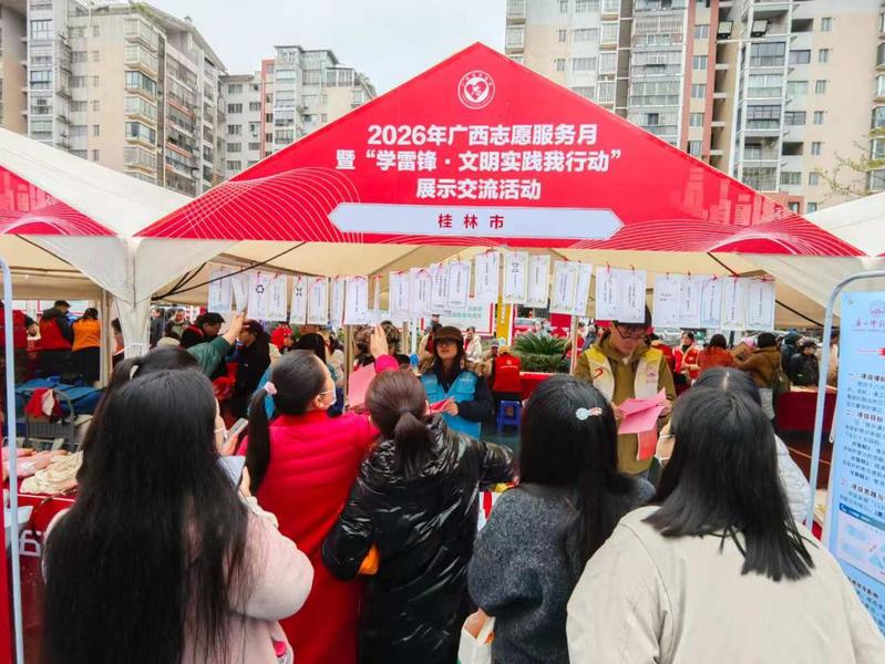 2026年3月1日上午,在第63个“学雷锋纪念日”、第6个“广西志愿者日”及“广西志愿服务月”到来之际,自治区党委社会工作部、自治区文明办、桂林市委等单位在桂林市七星区空明西路党建文化广场联合举办了2026年广西志愿服务月启动仪式暨“学雷锋·文明实践我行动”集中展示交流活动。来自14地市的社会工作部、社会工作机构、志愿组织、爱心企业、基层社区、高校志愿团体代表等约30多家单位、400多人参加。