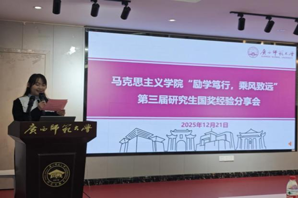 为更好展现朋辈典范的引领价值,有效调动我院研究生的学术探索积极性,涵养勤学精进的优良学风。12月21日下午,马克思主义学院在雁山校区三期容园学生活动中心成功举办“励学笃行,乘风致远”——马克思主义学院研究生国家奖学金获得者经验分享会。学院党委副书记、研究生专职辅导员,学院2025级研究生共50余人参与。